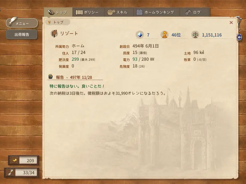 拠点が特化型になってきて、例えば農場なら農民、土いじりのスキル持ちで固めたい。元野原の第一拠点は、仕事の効率は度外視して、店主を集めたい。というような感じで... -
