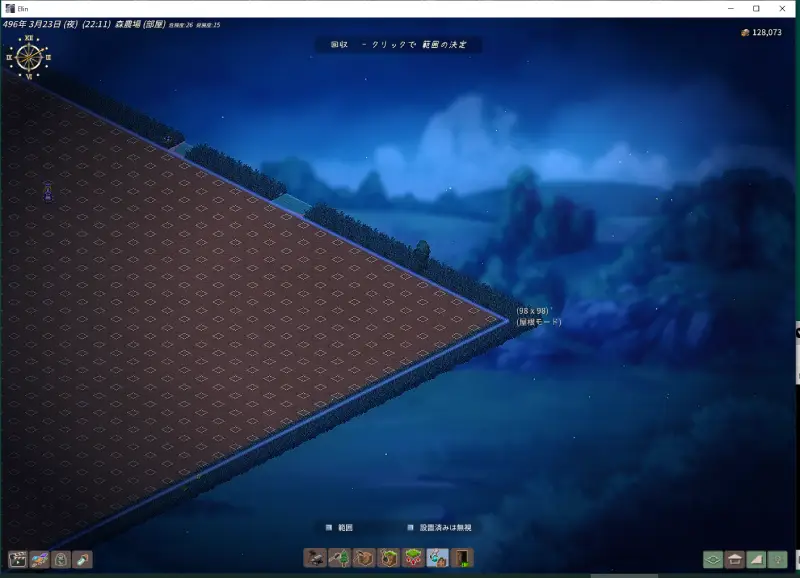 ようやく、金塊が溜まりきったので、第3拠点の農場拠点こと、森農場(安直なネーミング乙)を最大まで拡張しました。96km²とか広すぎ(笑) ようやく世界の果て(ウソ... -