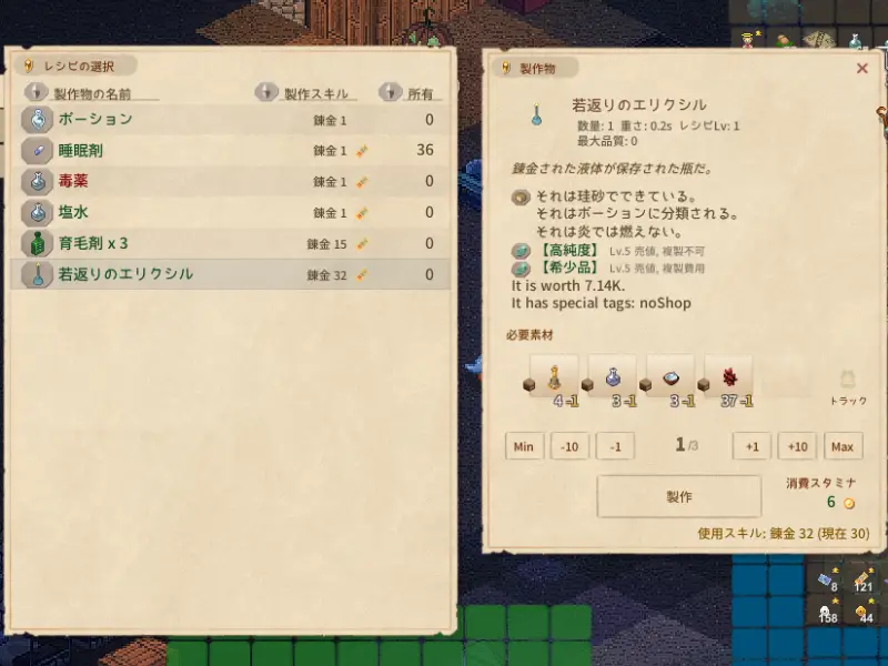 錬金スキル50を達成!不老長寿のエリクシルを作ってみた