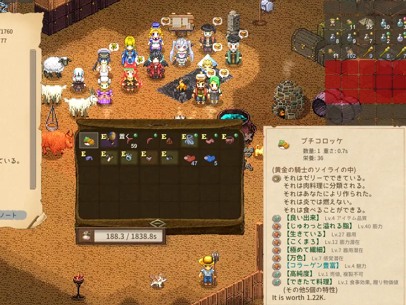 ケトルで複製可能な筋力飯だと+17くらいなので、そちらを今複製してますが、こんな感じで各能力値などが伸ばせる飯を作ればいいのかな。全能力値アップみたいな料理も、興味があって、作ってみたいところです。
